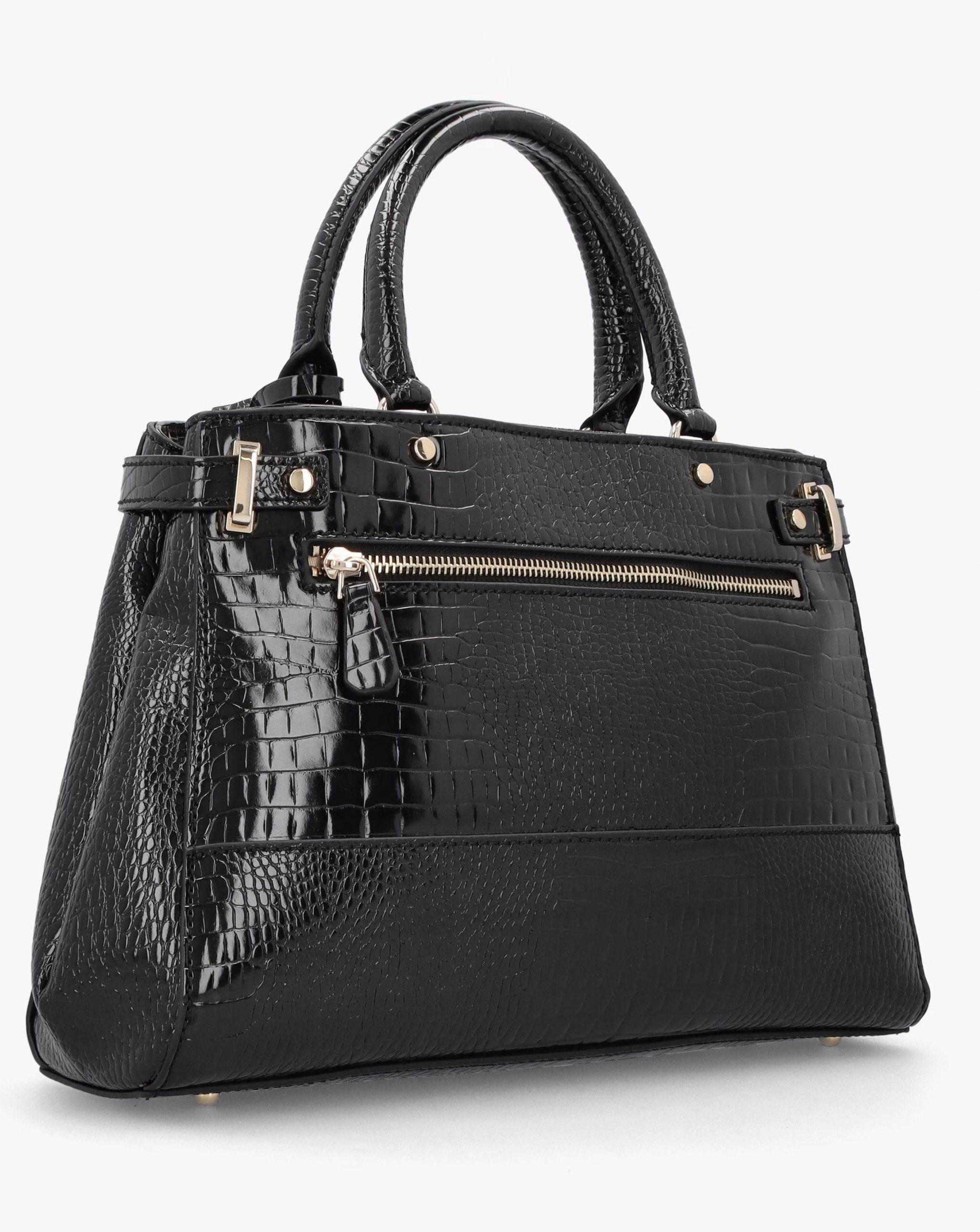 GUESS Silvye Luxury Black Moc Croc Satchel Bag