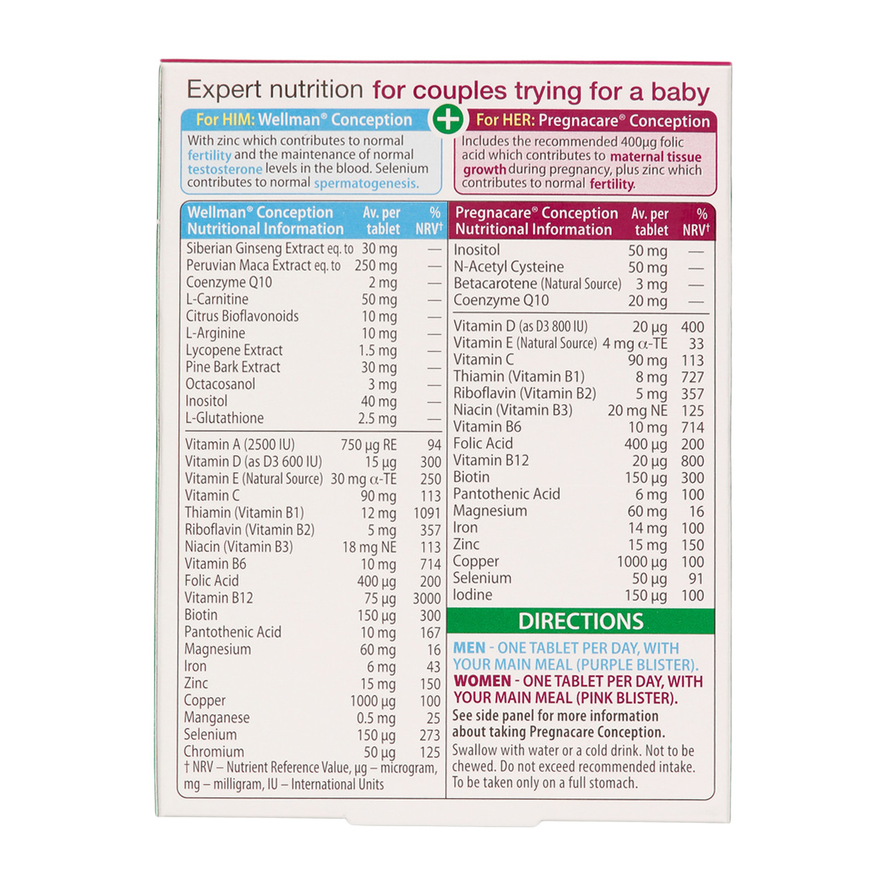 Pregnacare Him & Her Conception Tablets – x30 Pregnacare x30 Wellman